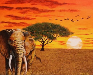 2024Zinderend Afrikaans landschap met olifant
